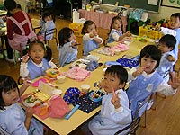 今日は年少さんはトトロの日。みんなどんなもの作るのかにゃ?