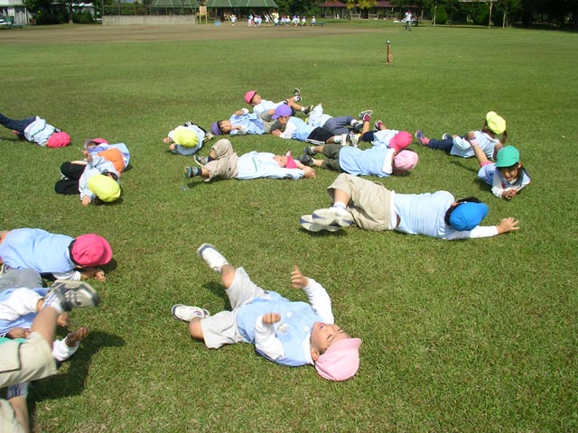 みんな目が回らないかにゃ?チョビスケはごろごろするより芝生に隠れてるバッタのほうが気になっちゃうにゃぁ・・・ |