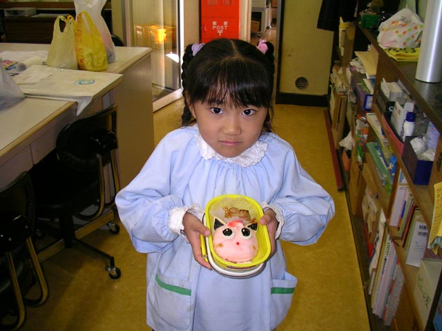 おいしいお弁当の時間にゃん!!お弁当食べ終わったらほしぐみさんのフルーツポンチ食べてもいいんだにゃ!!