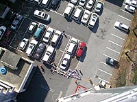 上空40メートルから下を見ると、みんなが米粒みたいに小さいにゃん!