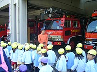 消防士のお兄さんたち、案内してくれてありがとにゃん。