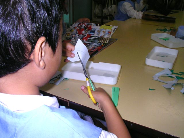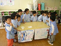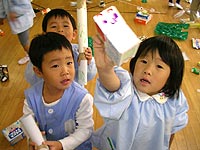 このクラスはハサミを使って製作中。上手にハサミ使えるかにゃ??
