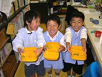 チョビスケはみんなが持ってくるおもしろいお弁当も見てみたいにゃぁ。来週の給食も頑張ってにゃ!! |