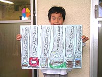 上手に電車の絵が描けたんだにゃん。しかも、斜め45度上空からみた角度だにゃぁ・・・う〜ん。さすがにゃん。こういうのって鳥瞰っていうんだっけかにゃ?