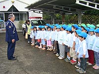 今日は年長さんが交番見学に行ったにゃん。今日は晴れてるから白バイ隊も来てくれるかにゃ?