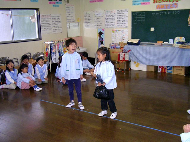今日はドキドキの公開保育の日。みんな緊張して・・・・ないようだにゃ。