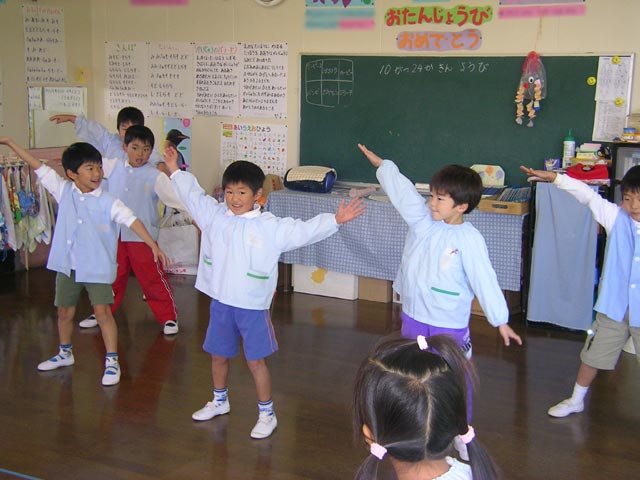こちらはお遊戯の様子をちょっと見てもらってるんだにゃ。