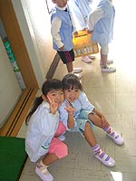 牛乳当番さん、お部屋に持っていくのが多すぎたので、ちょっともどしてくれたところにゃん。