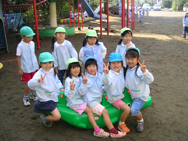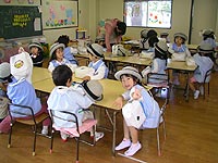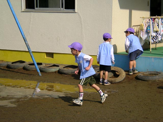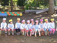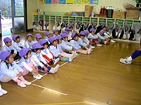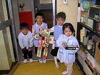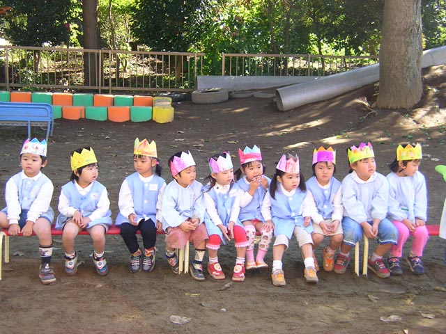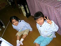 久しぶりにきた幼稚園は楽しかったかにゃ? きっとイスも机も、み〜んなちっちゃく感じたんだろうにゃぁ・・・ |