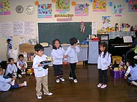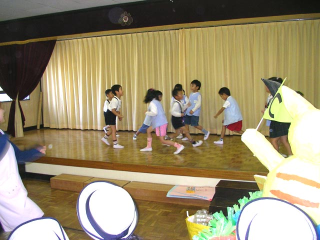 体操教室までの時間はっていうと・・・こっちのクラスは発表会の練習にゃん。 小道具も完成して、だんだんノッてきたかにゃ?!