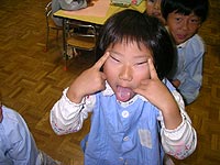 両側から走っていって、出会ったところでジャンケンポン!負けたらどかなくちゃいけないから、ぜったい負けられないよにゃあ・・・ |