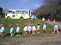おイモはバスに乗っけてみんなはお散歩しながら帰るんだにゃん。