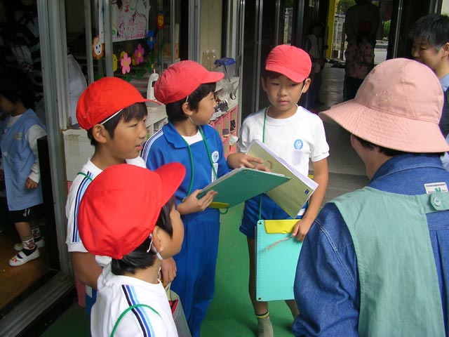 今日は小学校のお友達が地域探検に来てくれたにゃん。