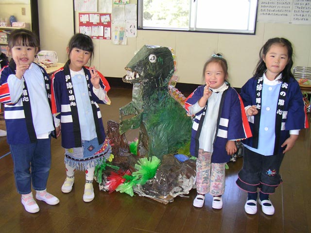 ゴジラも映画の中では火事とか起こすけど、幼稚園のゴジラはそんなことしないよにゃ。