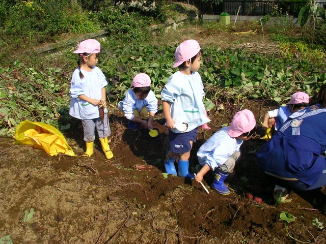 年中さんは黙々と掘ってるにゃん。もう2年目だからベテランかにゃ?