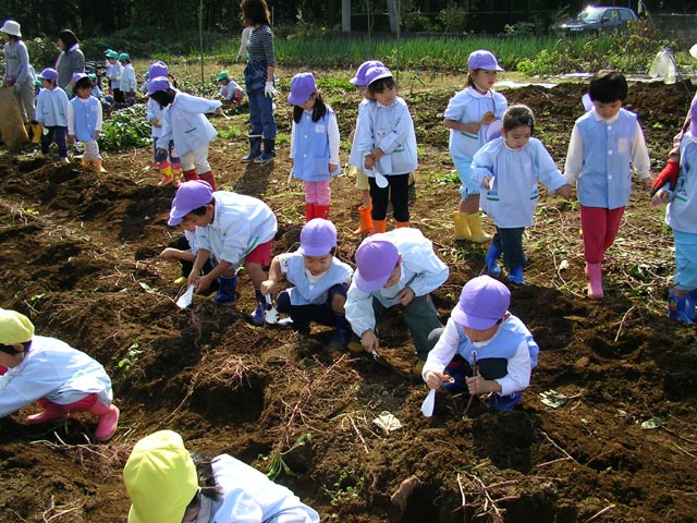 そうそう。ツルの下にお芋がなってるんだよにゃ。みんなよく知ってるにゃ〜! |