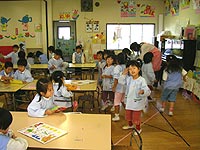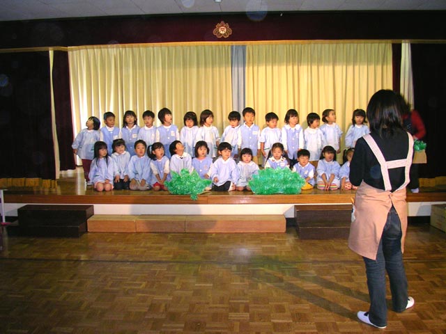 他のクラスの劇を見てると、はやく自分たちもステージで踊りたくなっちゃうよにゃ!う〜ん。。。チョビスケもマタタビダンスで出してもらおうかにゃぁ・・・ |