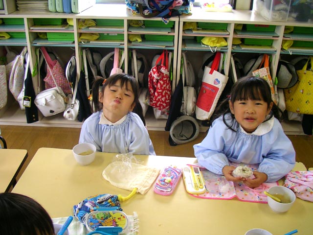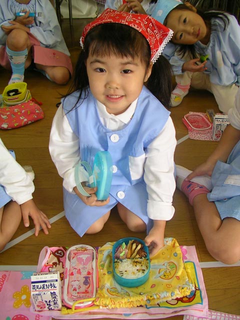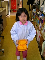 左のお友達はキティーちゃん。右のお友達はアンパンマン。ふりかけと海苔でお顔ができてるにゃん。なかなかみんな力作だにゃあ。どんなところが苦労したか、教えてほしいにゃぁ。来週のお弁当が楽しみにゃん。