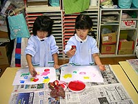 こっちのクラスでは掘ってきたおイモでスタンプを作ってるにゃん。