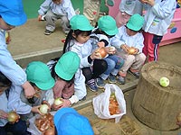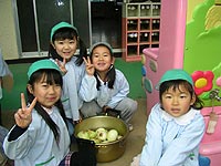 今日は年長さんが明日のお誕生会に出す、カレーの準備をしてるにゃん。